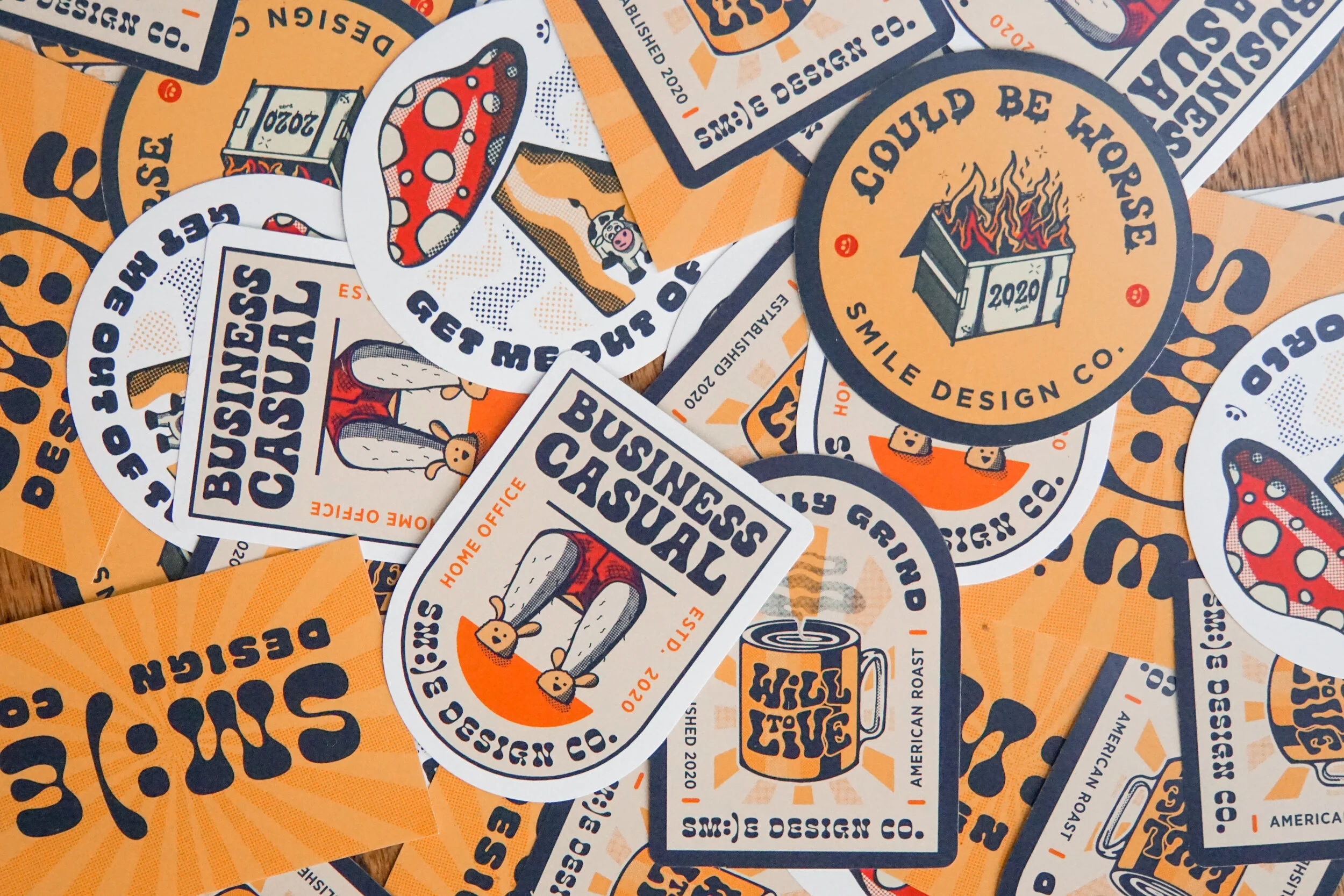 During the COVID quarantine, a colleague of mine and I decided to create our own brand. We chose the name "Smile Design Co.", as we wanted our designs to be cheeky and bring humor into the midst of a bleak time period. Based on our inherent heady aesthetics we created and mocked up these designs that we collaborated on.
